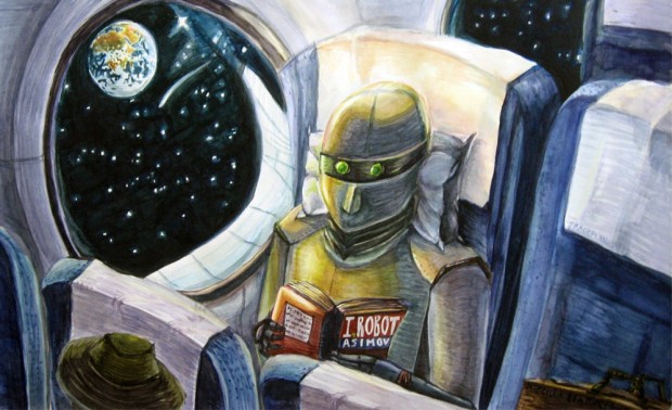 Bilimkurguda çok tutulan bir başka konu da budur. Birçok eserde insanlara yardımcı olan – bazılarında tam tersi – robotlar mutlaka yer alır ve başlarından çeşitli maceralar geçer. Robot sözcüğü kendi kendine iş gören anlamına gelen ‘Robota‘ kelimesinden gelir. 1921 yılında yazdığı oyunu “R.U.R. – Rossums Universal Robots“da ilk kez ünlü Çek yazarı Karel Capek tarafından ortaya atılmış ve daha sonra hemen hemen tüm medeni dillere girmiştir. Bilimkurguda kullanılan android kavramı ise “insana benzer” anlamına gelir ve aslında bir robot olmalarına karşın dış görünüşleri insana benzer yapay yaratıklar için kullanılır. Robotlar konusunda en ünlü bilimkurgu yazarı hiç şüphesiz Isaac Asimov‘dur. Kendisi “I, Robot” adlı eseri ile bu konunun öncülerinden ve yol göstericilerinden sayılır. Çünkü ortaya attığı dört maddelik ‘Robot Kanunu‘ birçok bilimkurgu yazarı tarafından benimsenmiş ve çoğu yazar kendi robotlarını da bu kurallara uyar bir halde tasarlamışlardır.